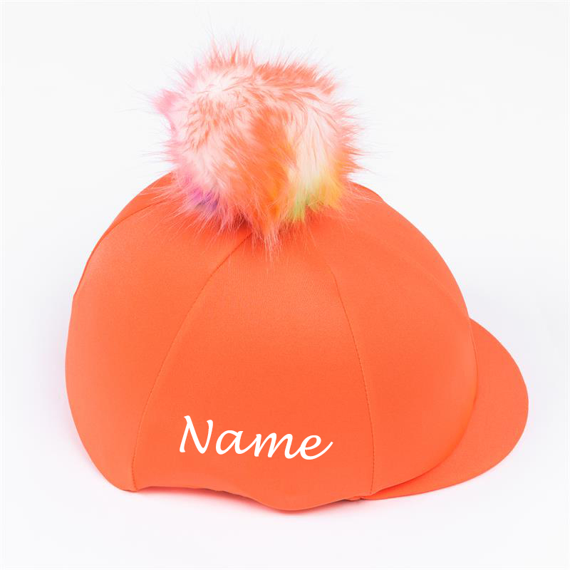 Sewn by a lovely team of ladies in Yorkshire, our hat covers are very clever and stretch to fit most size and style riding hats. We have pocket covers for the hat with a brim and peak hat covers for the skull design hat. Our designs are hand-pressed and the poms are secured with a large felt pad and safety pin with six extra tags for extra security. No poms will fly off on or watch!