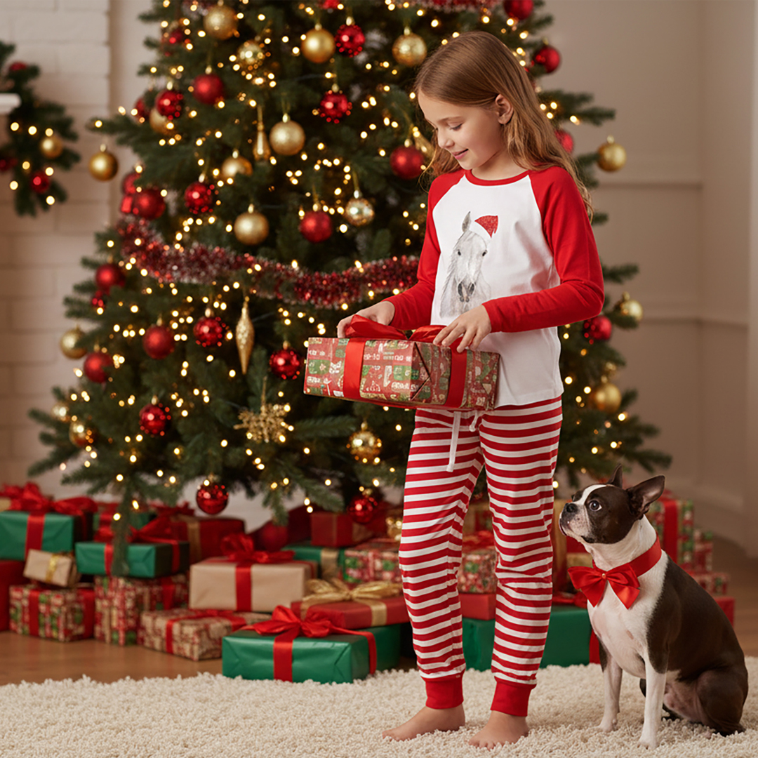 This fun pj set is perfect for a horse-mad person this Christmas. If you would like it personalised, we will add any name you like across the back in red.